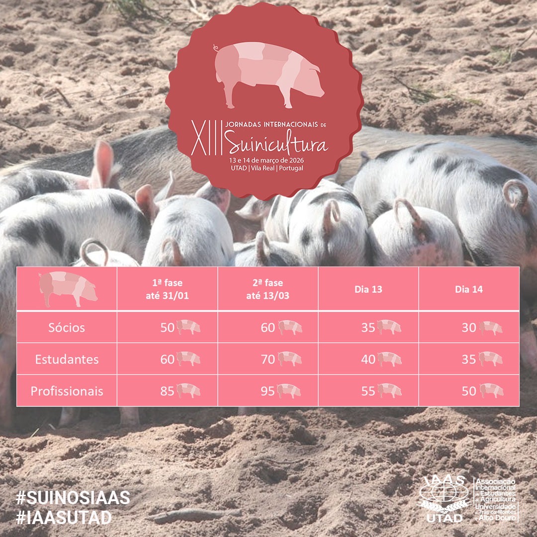 A Associação Internacional de Estudantes de Agricultura da Universidade de Trás-os-Montes e Alto Douro (IAAS–UTAD) vai realizar as XIII Jornadas Internacionais de Suinicultura nos dias 13 e 14 de março de 2026. A organização do evento avançou que o programa provisório já se encontra disponível.